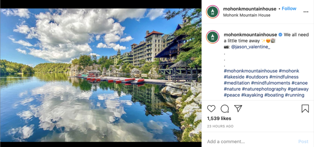 New York’s Mohonk Mountain House is already known as a rugged escape from Manhattan. They shared this guest’s photo to remind guests past and future of the relaxing scenery they can expect on their staycation. If, like Mohonk, the natural surroundings are one of your hotel’s top amenities, show it off!